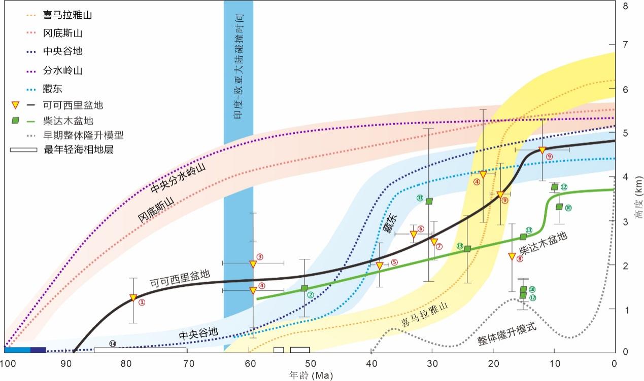 图2 青藏高原从造山带转变为统一高原的隆升历史