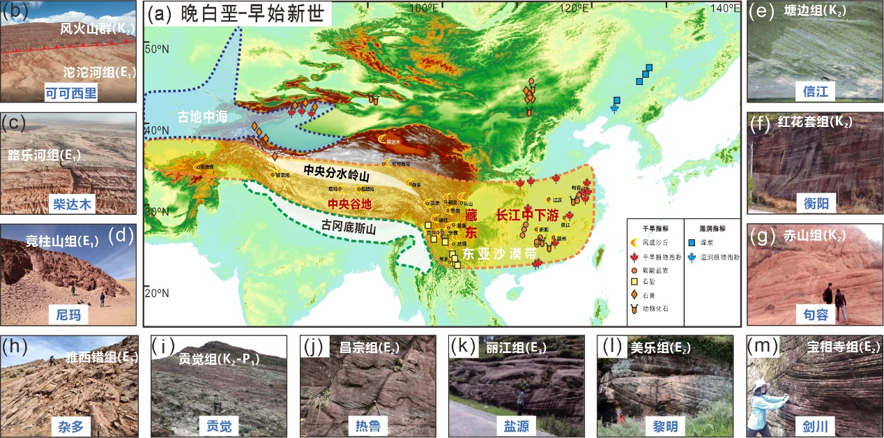 图4 晚白垩世至早始新世青藏高原及邻区风成沙丘和干旱气候指标分布图