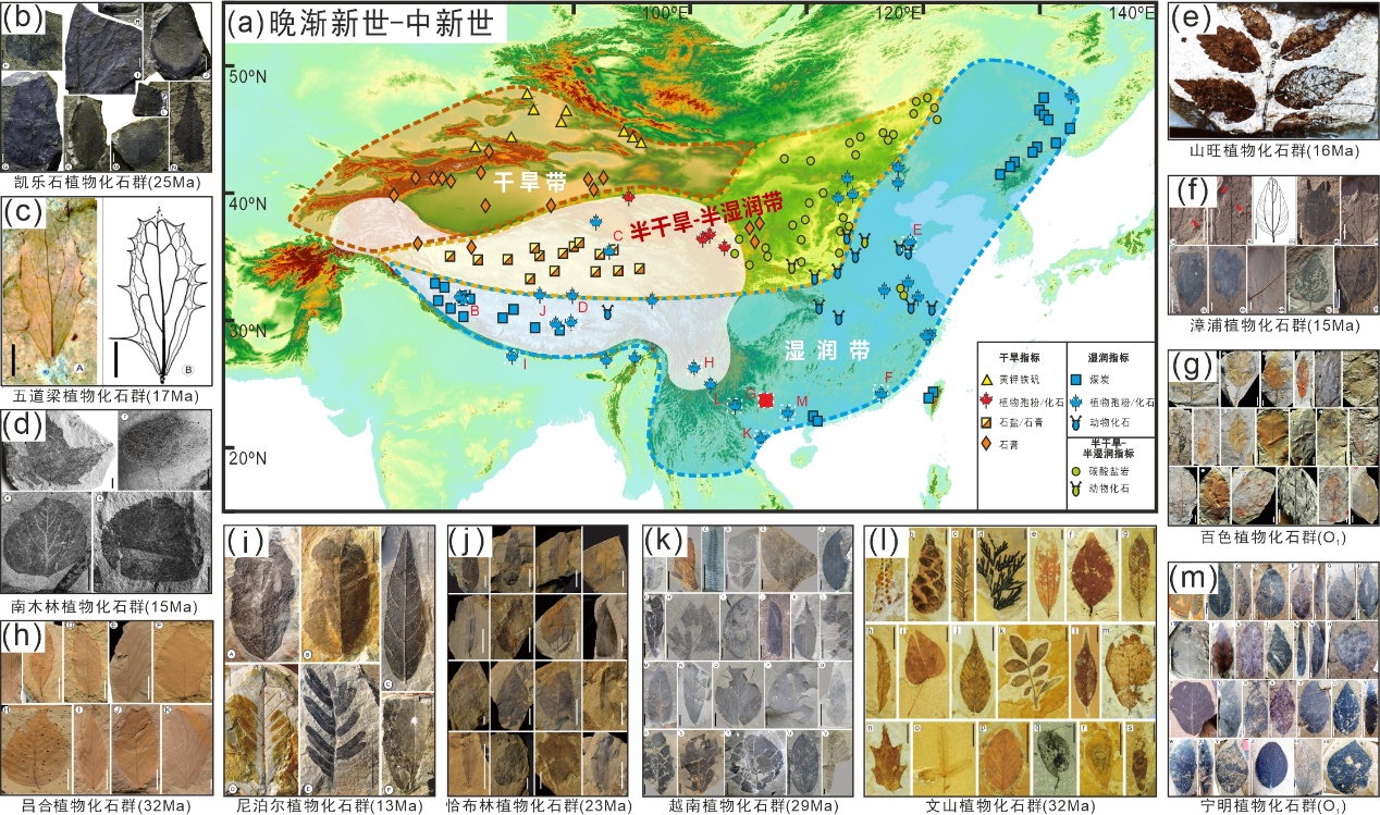 图6 晚渐新世-中新世期间青藏高原及邻区典型气候和植被指标分布图