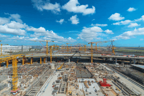 浦东机场四期扩建工程是上海重要的交通基础设施项目,预计在2028年建成。届时,浦东国际机场将拥有3座航站楼、1座单体卫星厅、4条跑道。