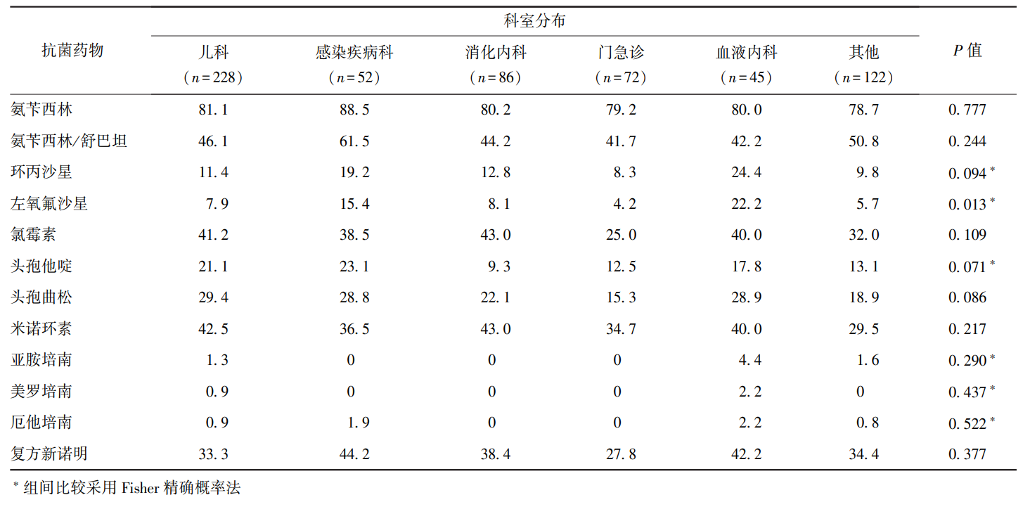 2.3.5 沙门菌耐药特征与分离科室的关系