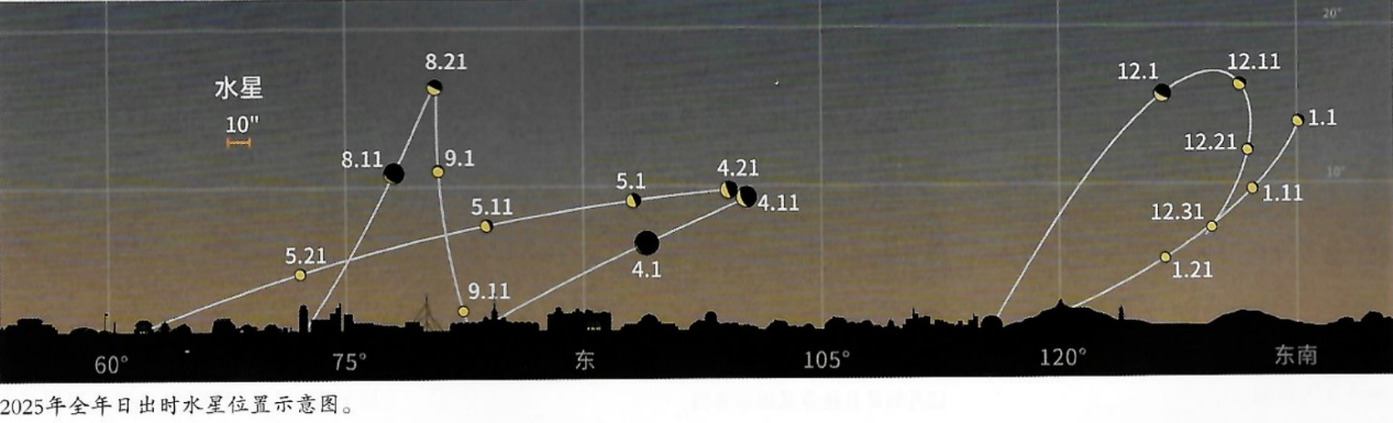 今年水星共有三次西大距,其中8月和12月两次的观测条件都很好,本月8日前后,日出时水星地平高度约17°,亮度约0等。这是今年最后一次观测水星的机会,下次再看到水星就是明年2月了。