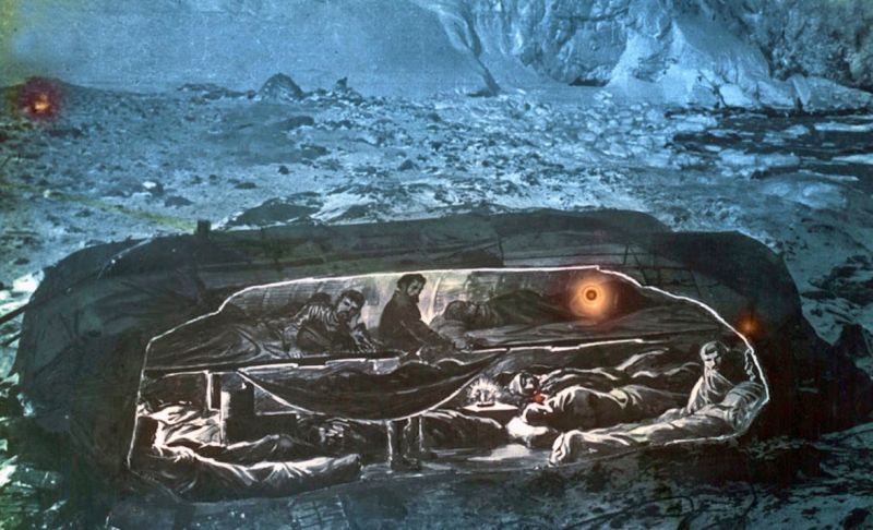 10 月 30 日,沙克尔顿一行拖着辎重向346 英里外的宝莱特岛转移,但因冰面破碎雪橇无法前行而作罢。为了最大限度轻装前进,沙克尔顿杀掉船上的宠物狗猫,规定每人除衣服鞋袜外只准携带 2 磅私人物品。宣布命令后沙克尔顿撕下《圣经》扉页上的皇后题词、第23 赞美诗和《约伯记》中一页装进口袋,然后将 2 本书扔掉,接着把随身的金表、金币、金烟盒统统抛进雪中。此时的唯一价值是生存。每人在艰难的取舍中大都首选亲人的照片和书信,这是他们活下去的信念。沙克尔顿破例允许留下一把12 磅重的五弦琴,日后证明它是治疗精神抑郁的良药。