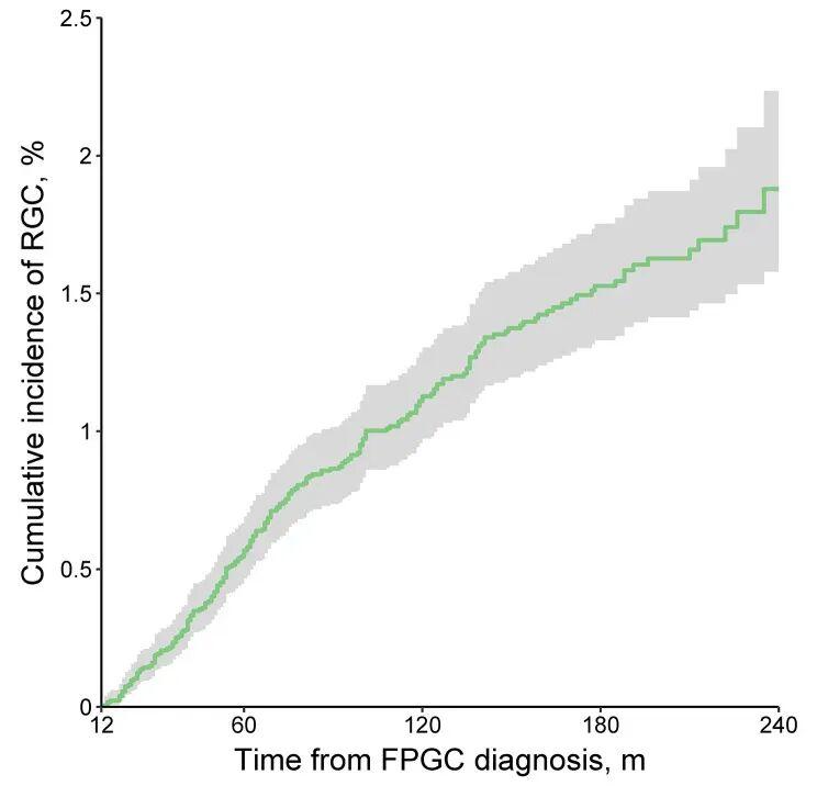 原发性胃癌(FPGC)诊断1年后残胃癌(RGC)的累积发病率这意味着术后患者并非远离胃癌,而是进入了一个需要长期关注的新阶段。