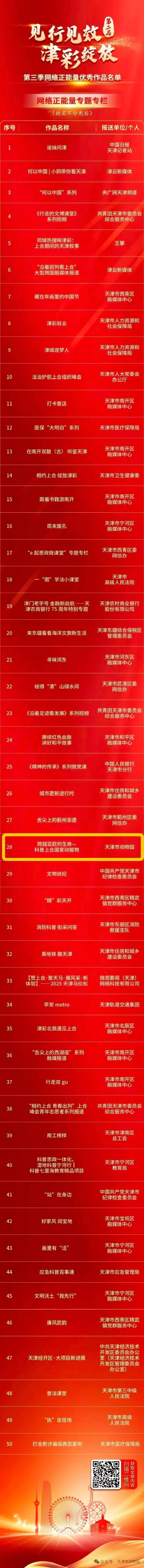 热烈祝贺天津市动物园 “跨越亚欧的生命 —— 科普上合国家动植物系列科普文章”,在第二届 “见行见效 津彩绽放” 活动第三季评选中,斩获网络正能量优秀作品奖!这份荣誉不仅是对我园科普工作专业性与影响力的高度认可,更成为激励我们在科普道路上持续奋进的强大动力。