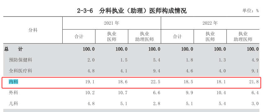 这些医师可不只是负责高血压。他们分成了十几个大科室,其中只有一部分是内科的,按照比例18.5%,那么,大概有67万内科医生。