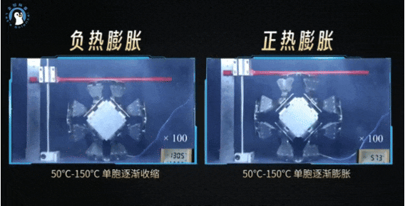 这就像是给材料装上了自动调温器。温度升高时,结构会自动收缩;温度降低时,结构会自动膨胀。通过调整结构设计,把一个个小的单胞重新排列组合,还能够实现零热膨胀的效果。