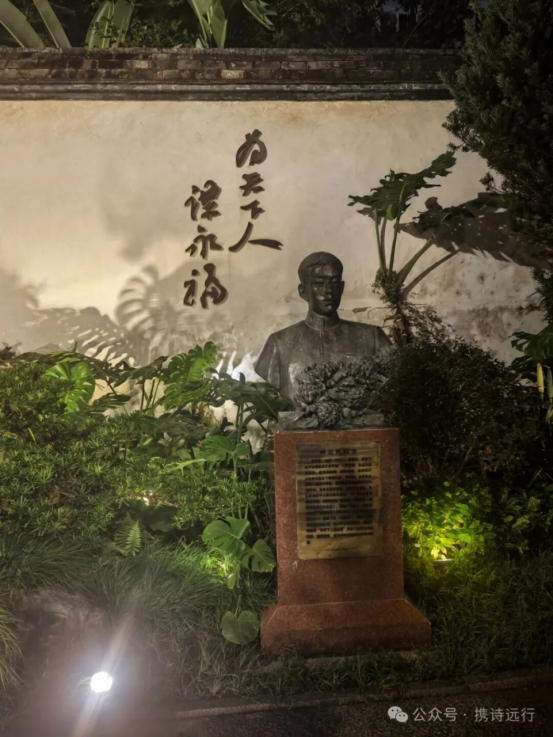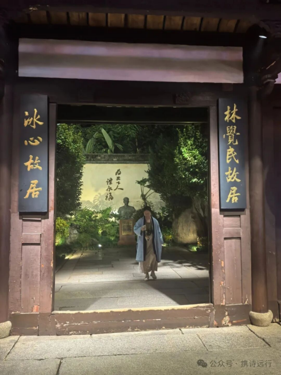 榕樟叠翠映灯稠,乘兴闲游。凝神慕访冰心宅,桔灯亮、仁爱光流。长夜惊雷震荡,觉民绝笔情柔。