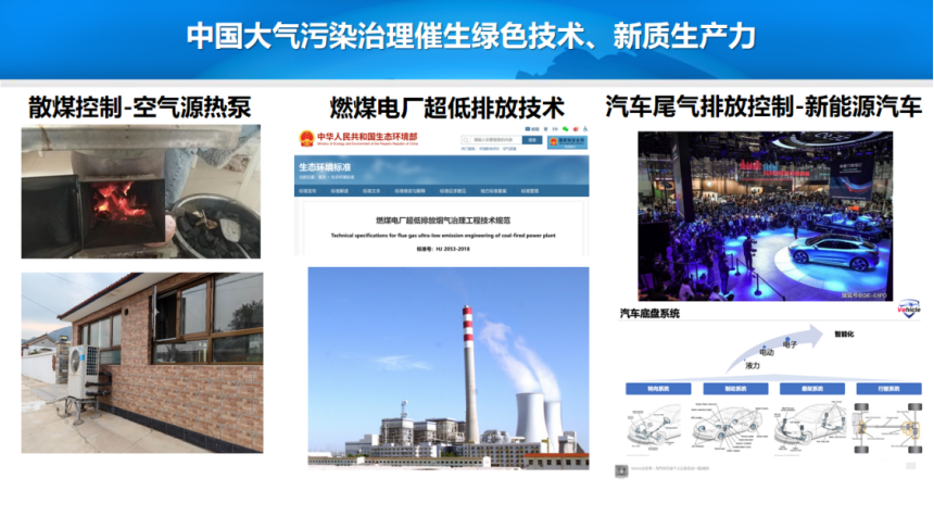 十年前,全球媒体关于中国的头条新闻通常是中国的污染。在冬季,我国从北到南都会经历非常严重的空气污染,呈现范围广、时间长、浓度高的特点。经过深入研究发现,大气污染是个非常复杂的问题,不仅涉及化学反应,还与天气、气候变化有很大关系。有了这些科学的认识,中国对空气污染进行了全方位的治理,包括燃煤电厂实现超低排放、升级汽车尾气排放标准、禁止焚烧秸秆等。美国彭博社曾评价:“中国7年的空气污染治理相当于美国30年治理的成果”。我们通过研究发现,空气质量的显著改善带来了越来越多的蓝天,也带来了可观的健康收益,包括预期寿命的增加、健康风险的减少、医疗开支的节约等。同时,中国的大气污染治理也催生了绿色技术、新质生产力。