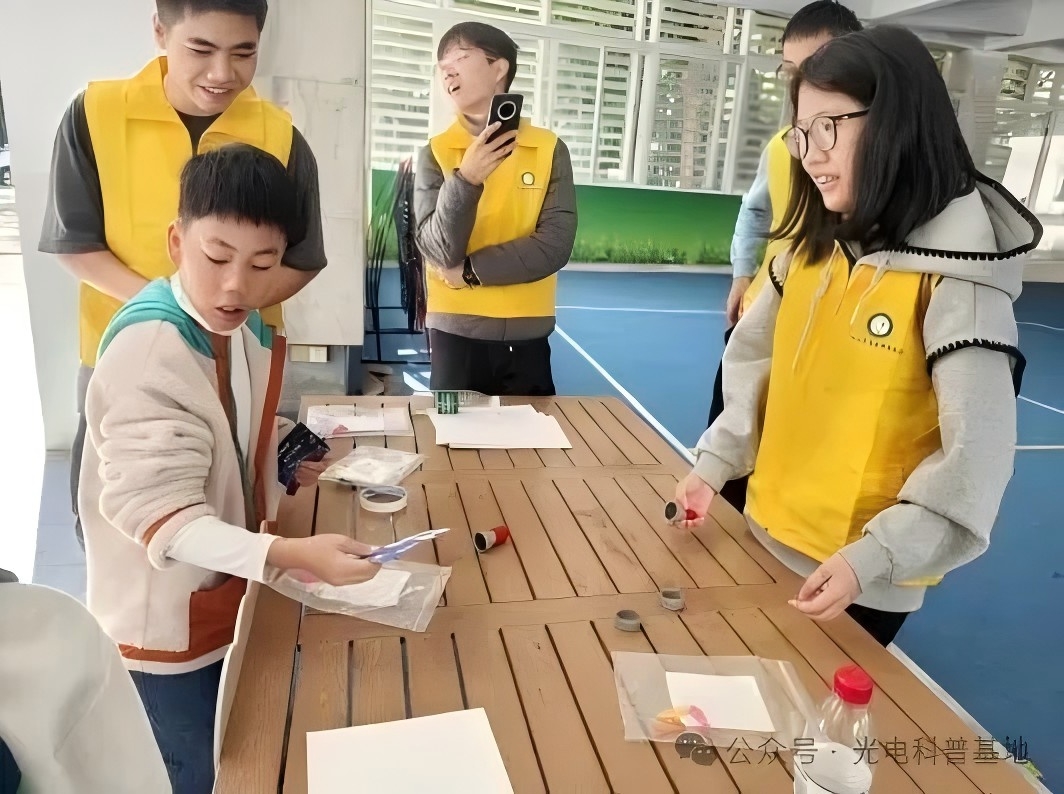 3.“镜面接力传球”赛场,小选手们组成“接力战队”,每个人手中的反射镜面都是“接力棒”。他们紧盯乒乓球影子,调整镜面角度,让“光影接力棒”传递到下一位队友手中,最终冲向终点靶心。这默契的配合,丝毫不亚于全运赛场上的接力健儿们,光的反射定律也在这团队协作的竞技中变得清晰可感。