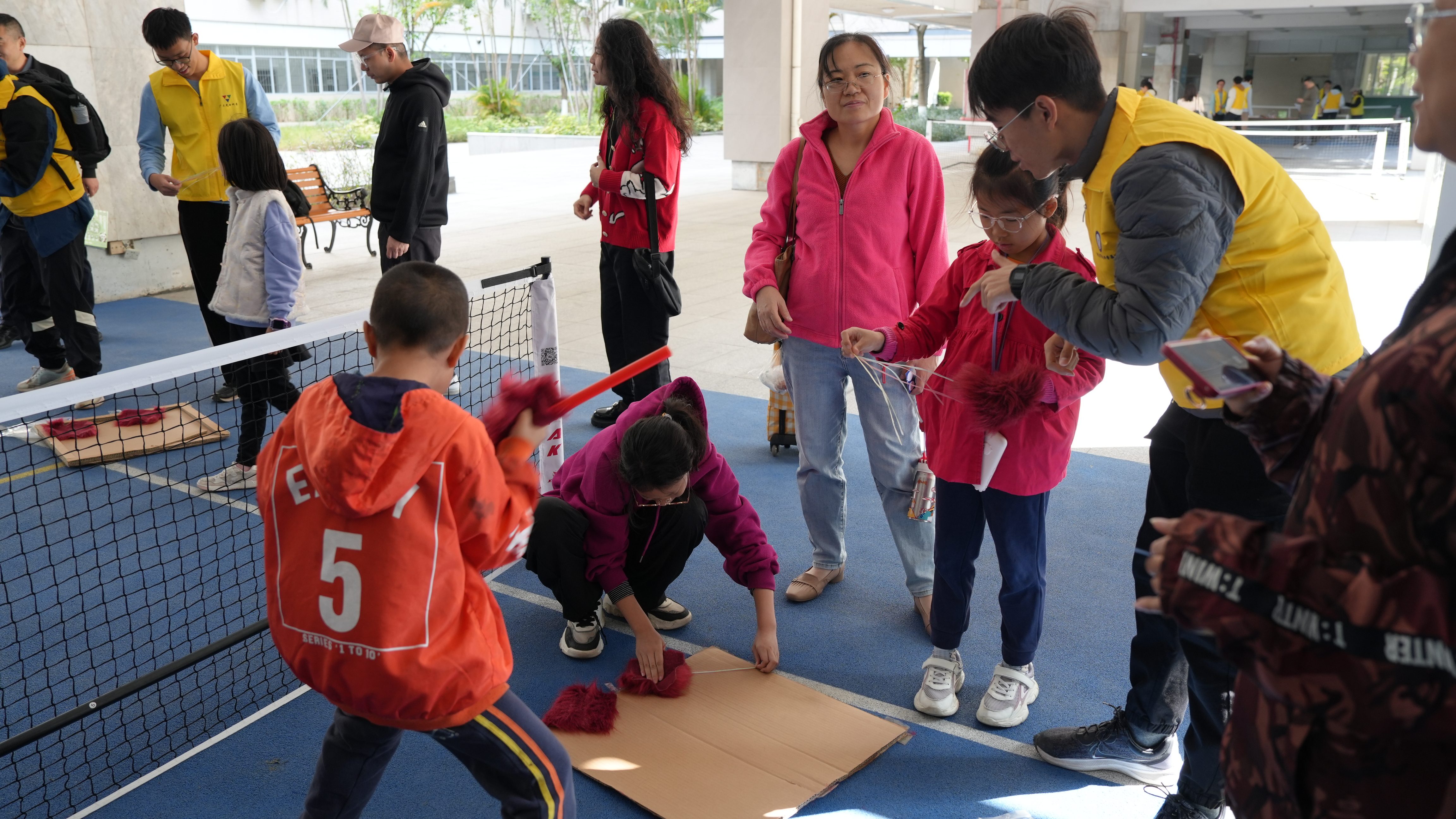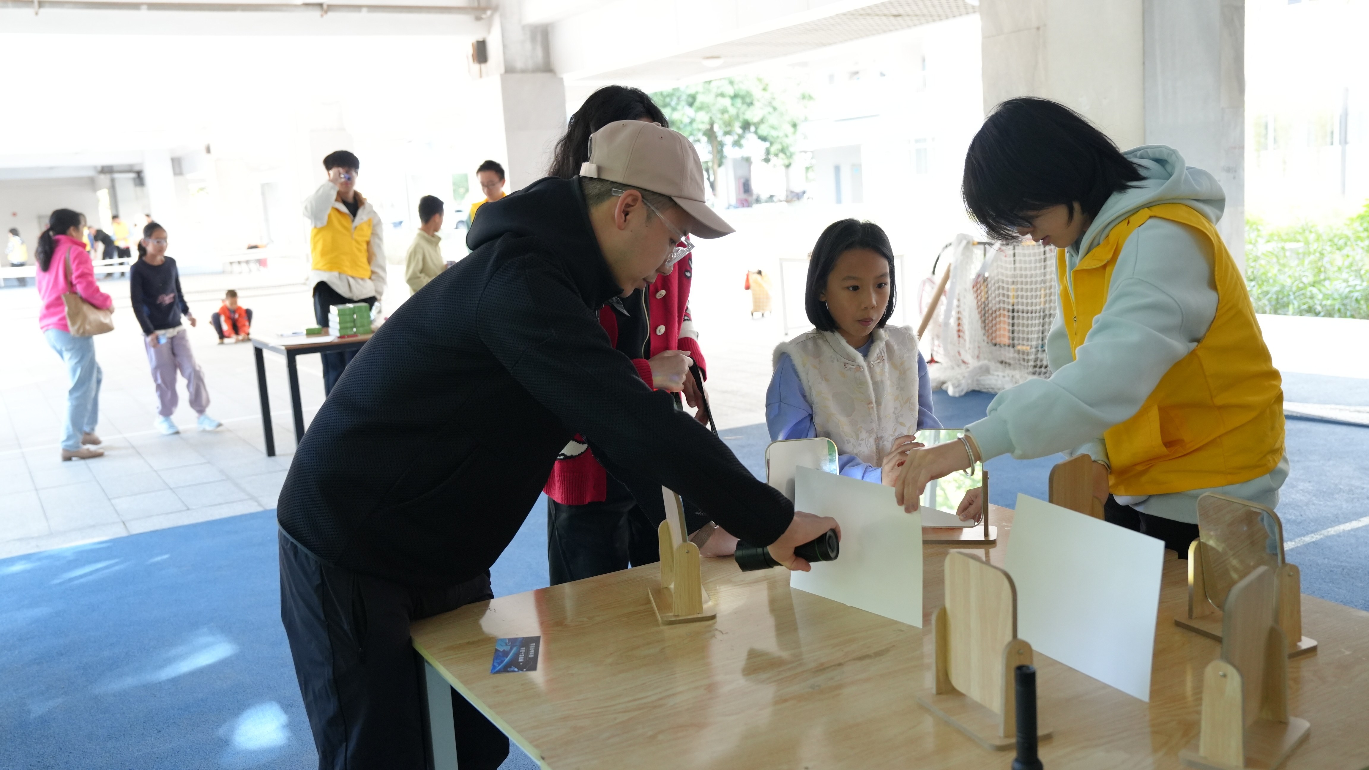 1.摆摊游戏区域俨然一座迷你全运会赛场,全运会主题与科普知识的碰撞,让这里的“竞技氛围”、格外热烈。“光影障碍跑” “太阳能小车拉力赛”“镜面接力传球”等竞赛项目前, 小选手们摩拳擦掌,家长观众则在一旁组成“啦啦队”,加油声此起彼伏。