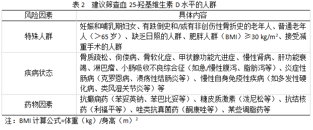 2022年《欧洲临床营养与代谢学会微量营养素指南》建议对维生素D消耗或缺乏的风险人群进行筛查。