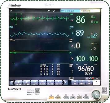 (3)全程通常持续10~30分钟,其间密切监测患者心电监护的心率、血压及血氧变化。