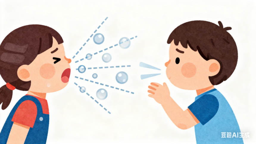 飞沫传播:最主要的途径。患儿咳嗽、打喷嚏时产生的飞沫中含有大量病毒,这些飞沫飘浮在空气中,在教室、食堂等密闭空间里,其他孩子吸入后就可能被感染。