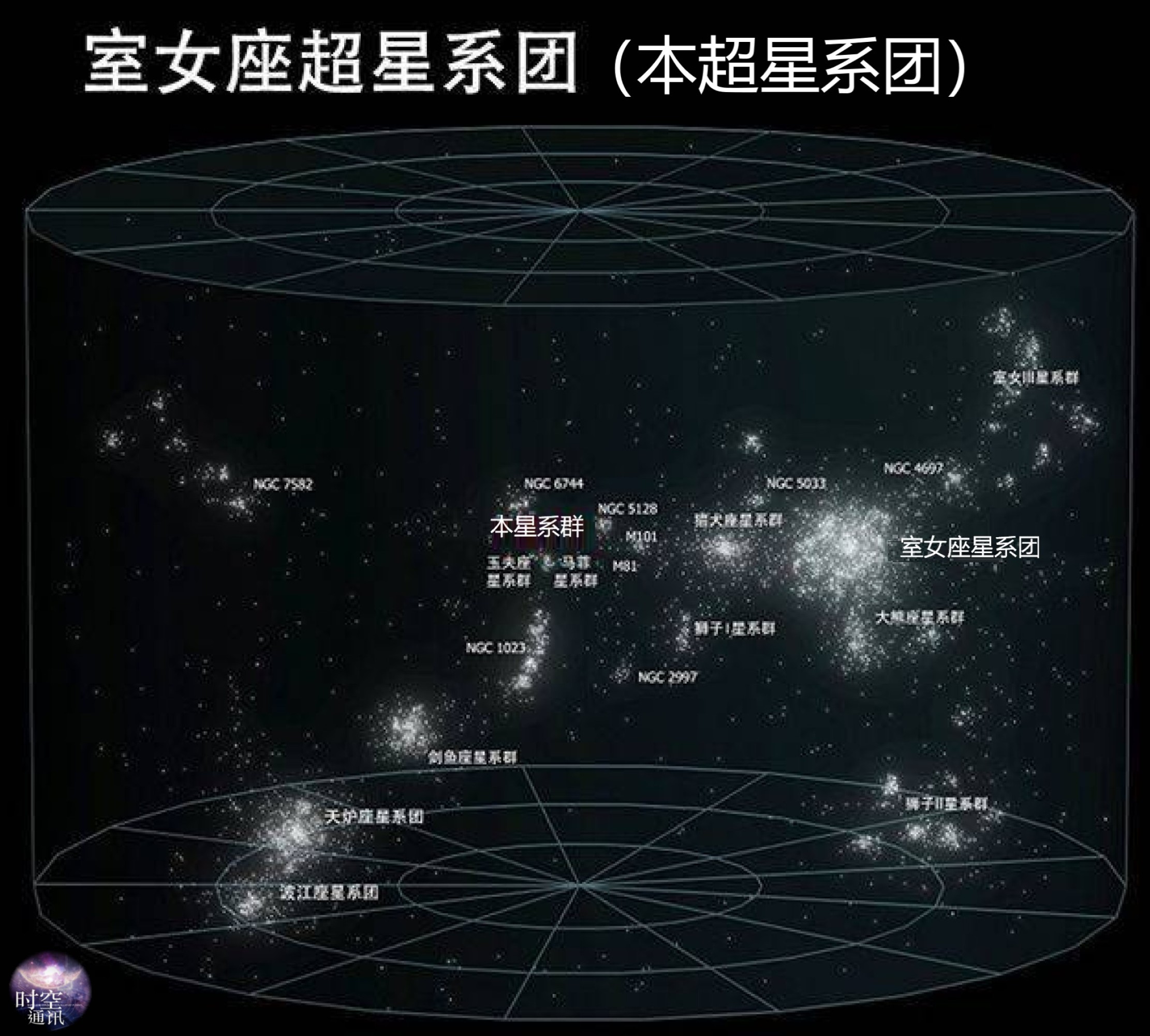 第六个层次,本超星系团。质量约为本星系群的228倍,包含星系群(团)约100个,覆盖了1.1亿光年天区。