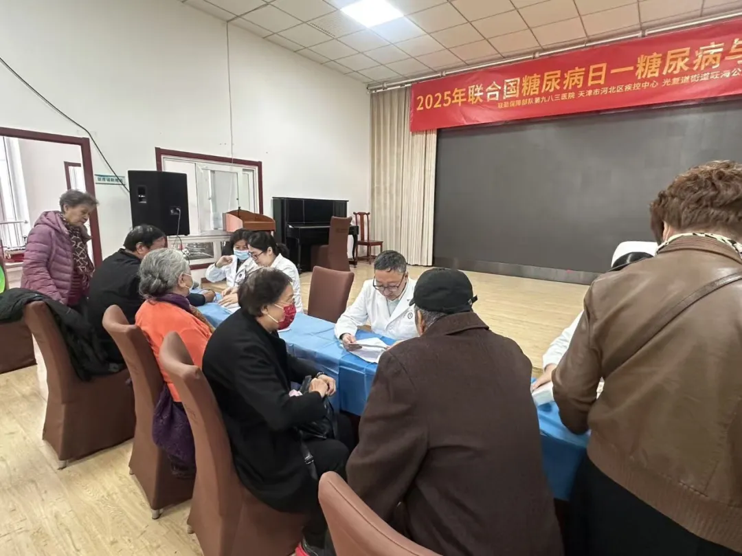 在第19个联合国糖尿病日来临之际,光复道街联合河北区疾控中心、联勤保障部队第九八三医院,在光复道街新时代文明实践所共同举办了以“糖尿病与幸福感”为主题的糖尿病日健康科普讲座及义诊咨询活动。