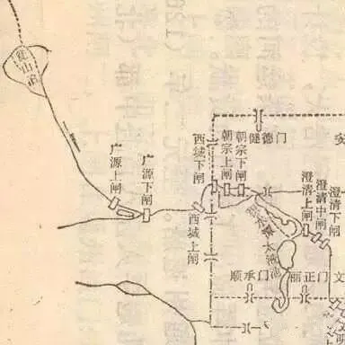 关于广源闸的具体位置,元代《析津志》记录:“京闸坝之源……自西水经护国仁王寺西,右始广源闸二,在寺之西。”即今紫竹院公园西、万寿寺东约100米处。明《漕河图志》记载,广源闸建于元至元二十六年(1289)。广源闸是节制通惠河(后来为长河)之水的关键,闸门落下时,闸东之水深不满一尺;提闸之后,河水可行舟。