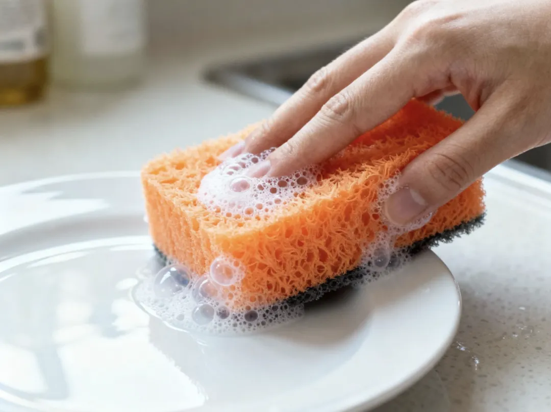 海绵疏松多孔,这些孔洞中会“藏”着水分、食物残渣和油污,为细菌滋生提供适宜条件。