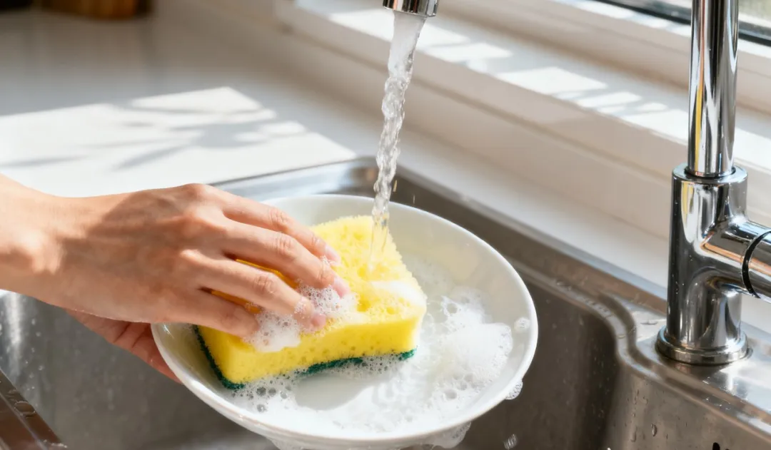 用完后的洗碗海绵,及时清洗,放置在干燥、通风处。每两周更换一次洗碗海绵。