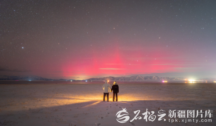 2025年1月1日晚,在博州赛里木湖,极光出现。资料图片