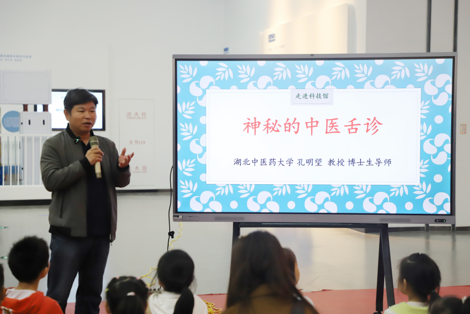 “科学家讲故事”系列科普课堂再次在湖北省科技馆一楼院士成果展厅开讲,湖北中医药大学孔明望教授受邀向现场的大小观众朋友们讲述中医是如何通过舌头来为患者诊断开方。