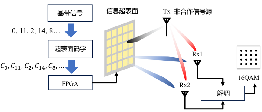 图1:信息超表面赋能高阶调制被动通信原理示意图