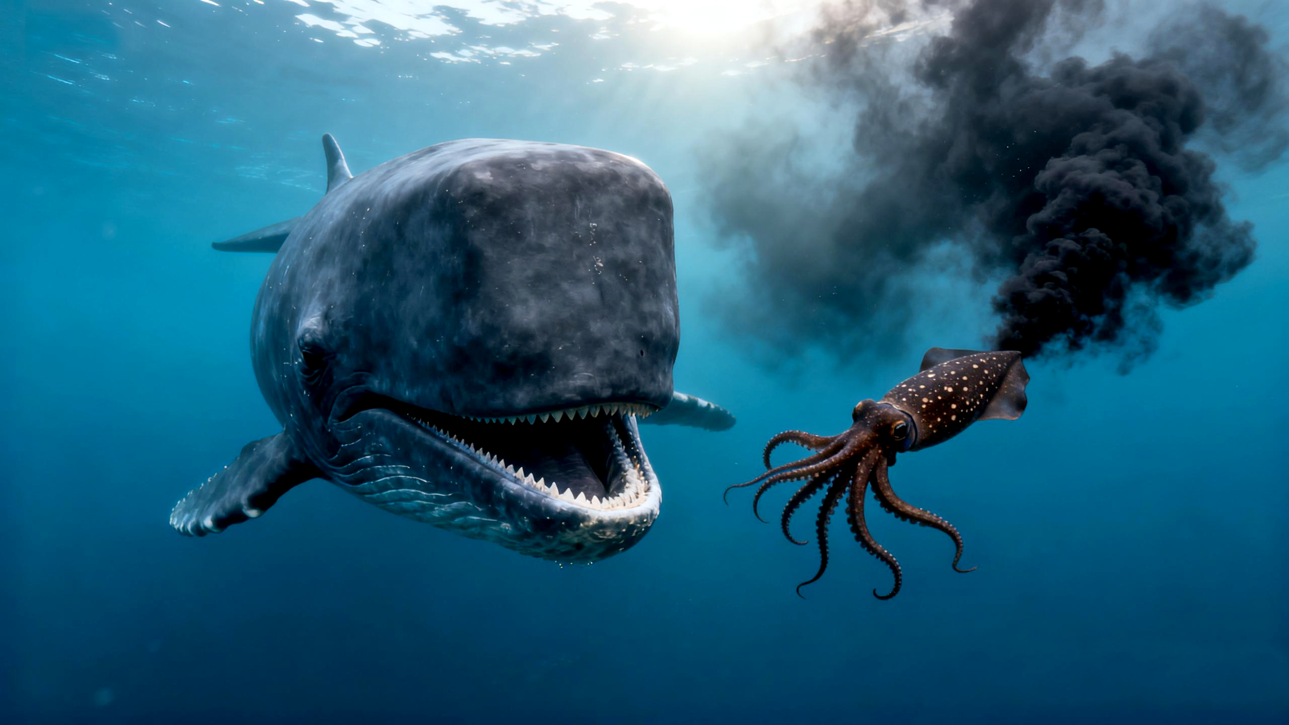 乌贼逃避抹香鲸捕食(图片来源:作者AI生成)