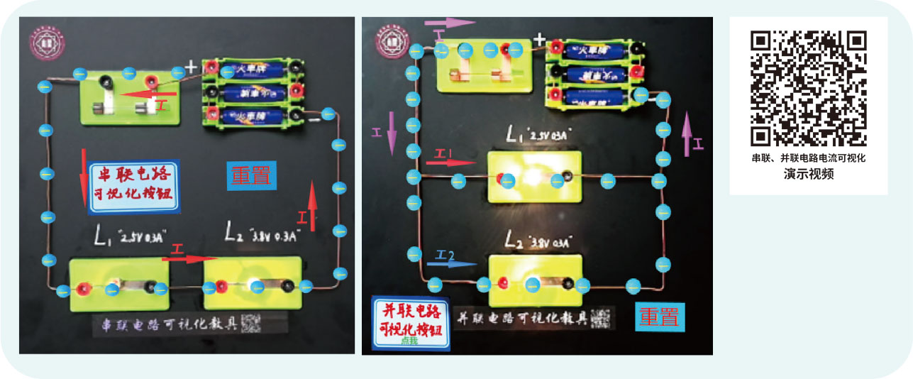 特点 效果如图6所示,基于真实实验,虚实结合,帮助学生更快理解电流与串联电路的特点。
