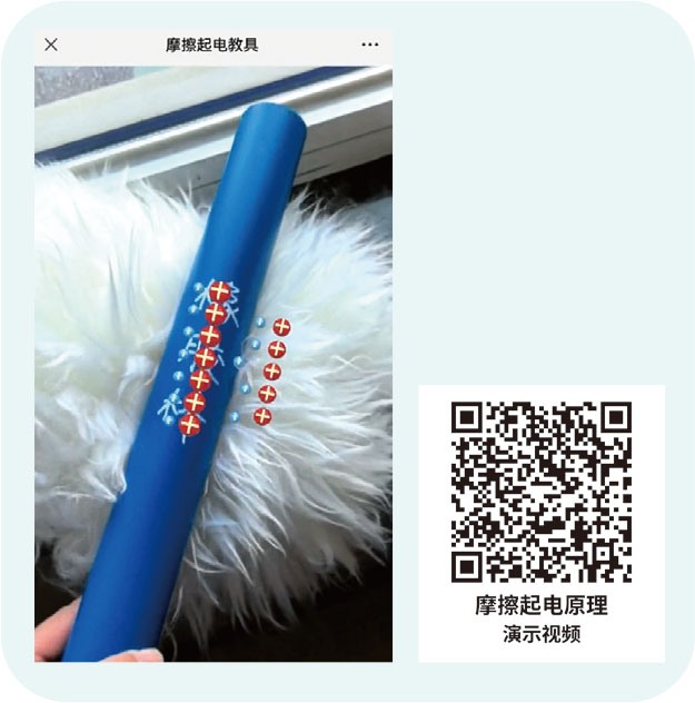 适用场景 教师课堂教学,用毛皮缓慢摩擦橡胶棒,使橡胶棒带电,同时手机投屏增强现实效果到大屏幕,进行虚实结合的原理展示。