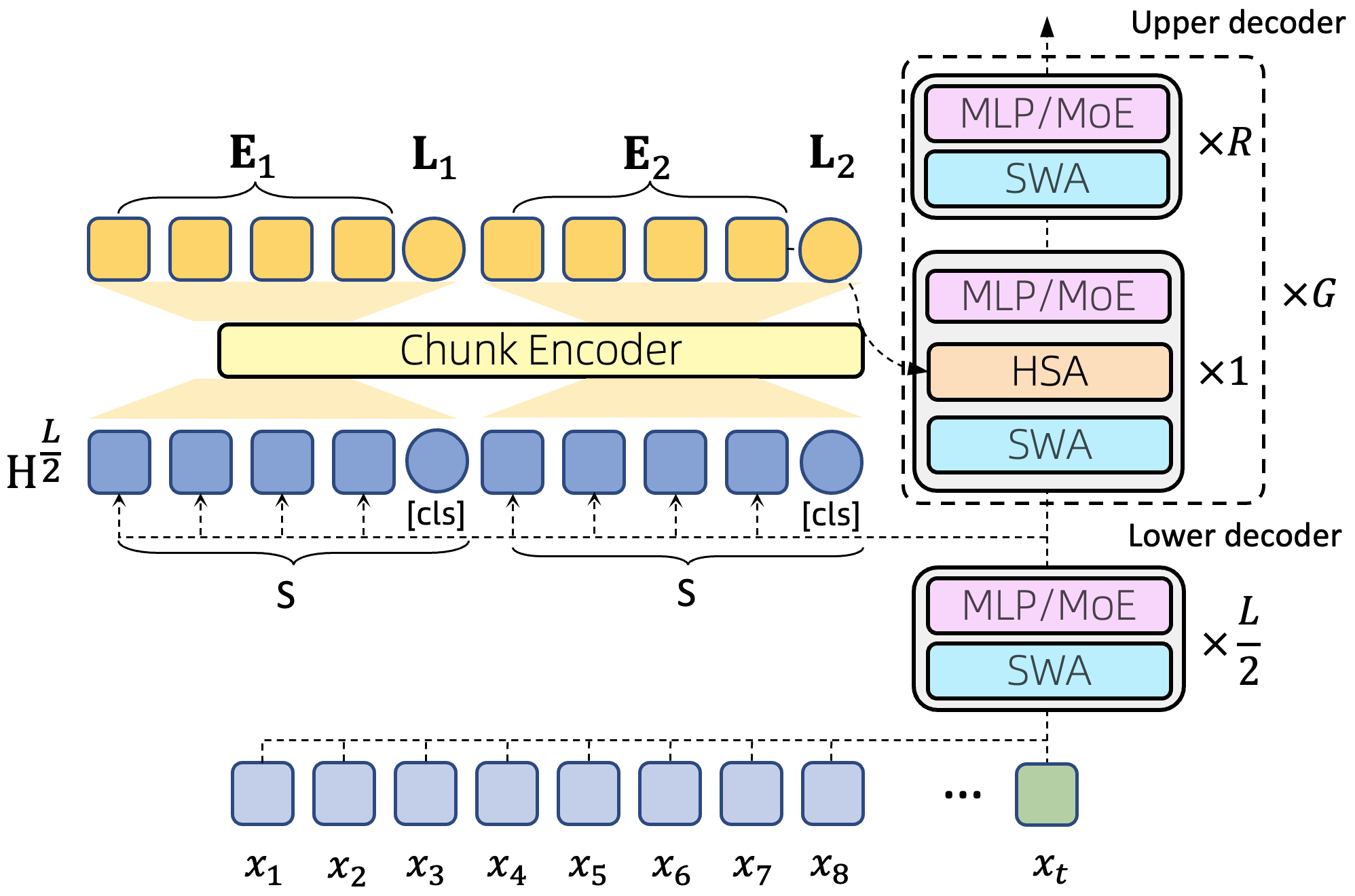 本文探讨了构建「能够记忆的机器」这一挑战,将长期记忆问题定义为高效超长上下文建模的问题。研究人员认为,实现这一目标需要具备三个关键特性:稀疏性、随机访问的灵活性以及长度泛化能力。为应对超长上下文建模的挑战,本文引入了一种新颖的注意力机制——分层稀疏注意力(Hierarchical Sparse Attention, HSA),该机制同时满足上述三项特性。将 HSA 集成到 Transformer 架构中,研究人员构建了一个参数量为 80 亿的混合专家(MoE)模型 HSA-UltraLong。