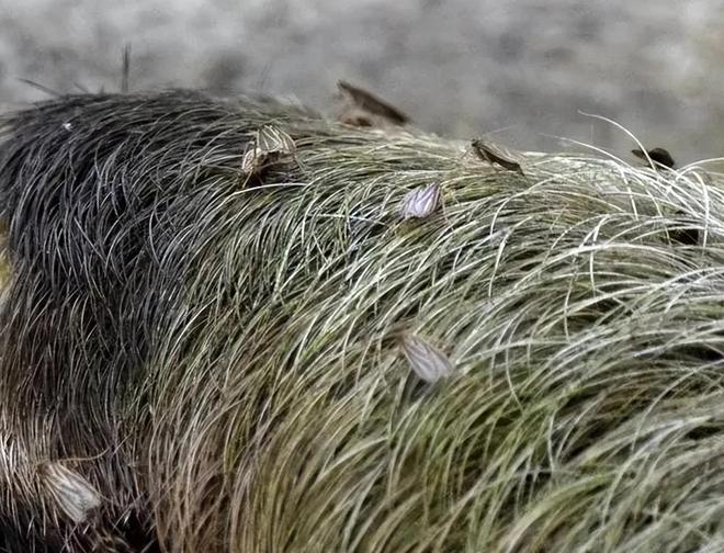 说到这就不得不提三趾树懒那看起来脏脏的,绿色的毛发了。虽然电影中的闪电看起来卫生整洁,但其实三趾树懒那凌乱的毛发里住着许多“小房客”,除了螨虫、蜱虫等寄生虫,一种叫做树懒蛾(sloth moths)的飞蛾与树懒达成了长期的“合作关系”,一只懒身上,可以住下多达120只树懒蛾,它们的排泄物和尸体释放的氮元素有助于树懒毛发中的藻类生长,而这些绿绿的藻正好充当了三趾树懒的保护色,再加上树懒的“慢动作”,它们的天敌角雕就算是“火眼金睛”也难以发现。