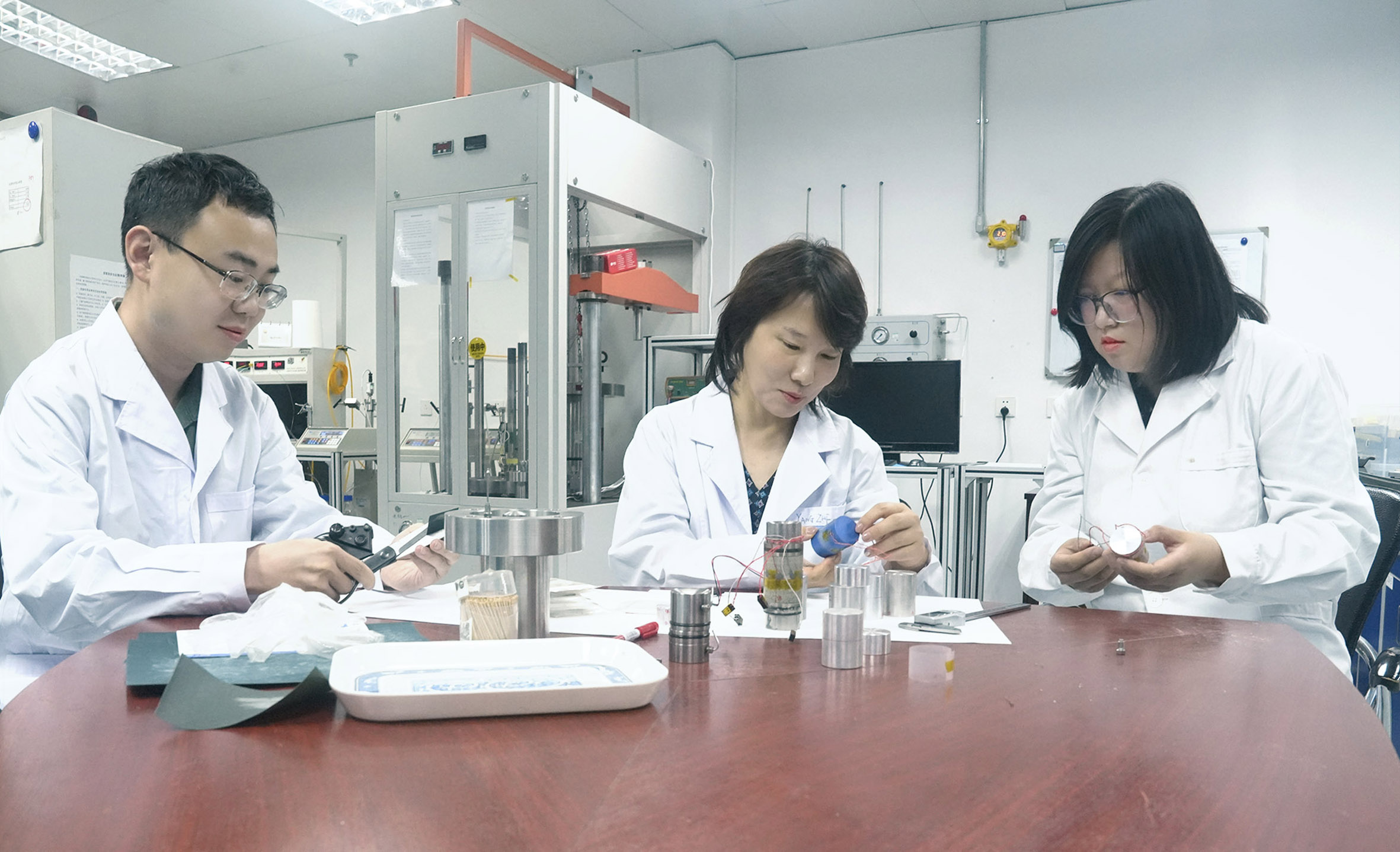 谈起实验室从设计到完工的整个经历,杨志芳感慨万千。这个过程充满了艰辛。从基础建设、设计图纸、订购设备到组装调试的每个环节都需要自己动手,大到发展规划,小到购买一张办公桌,每一个环节都需要团队成员亲力亲为。为了完成设备研制和加工,成员们自学了机械制图;为了找到合适的零部件,他们跑遍了周边大大小小的建材市场;为了制作合适的岩石样品,博士后甚至变成了车床和焊枪操作的熟练工;为了更好地理解力学知识,杨志芳在离开校园7年后,报考了清华大学航天航空学院力学系博士研究生,从高等动力学开始学起,5年的时间完成力学专业的学习和实践。“当你感觉坚持不下去时,其实再咬咬牙就挺过去了。”这是杨志芳经常挂在嘴边的一句话,既是为了激励携手同行的同事,更是对自己的勉励。一个又一个复杂的程序,日复一日地做测试,不能出分毫差错,一个小小的错误,很可能需要花费一个月甚至更长的时间校验纠正。