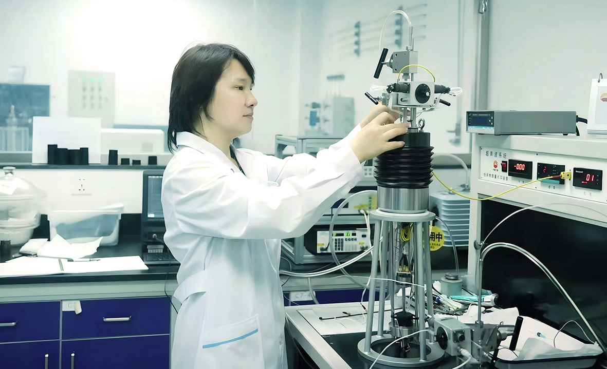 团队联合休斯敦大学韩德华教授,共同研制出国内首套低频岩石物理实验设备,能够测量从1~3000Hz范围内的岩石物理参数,解决了高频实验数据不能直接用于地震勘探的难题。低频实验设备的成功研制,为复杂孔隙介质中地震波传播规律及能量衰减机理的研究提供了重要实验基础。以曹宏为首的团队将跨频段岩石物理实验、数字岩石物理与天然气地震检测结合起来,创新发展了复杂孔隙介质岩石物理理论模型,揭示了气层弹性参数随物性、含气性变化新规律,突破了以往“地震频带内纵波信息对含气性变化不敏感”的传统认知,为后续推动气藏地震检测向定量化方向发展和技术创新奠定了坚实基础。为了获取可靠的实验结果,杨志芳经常在实验室三四天不回家,只为获得第一手数据。