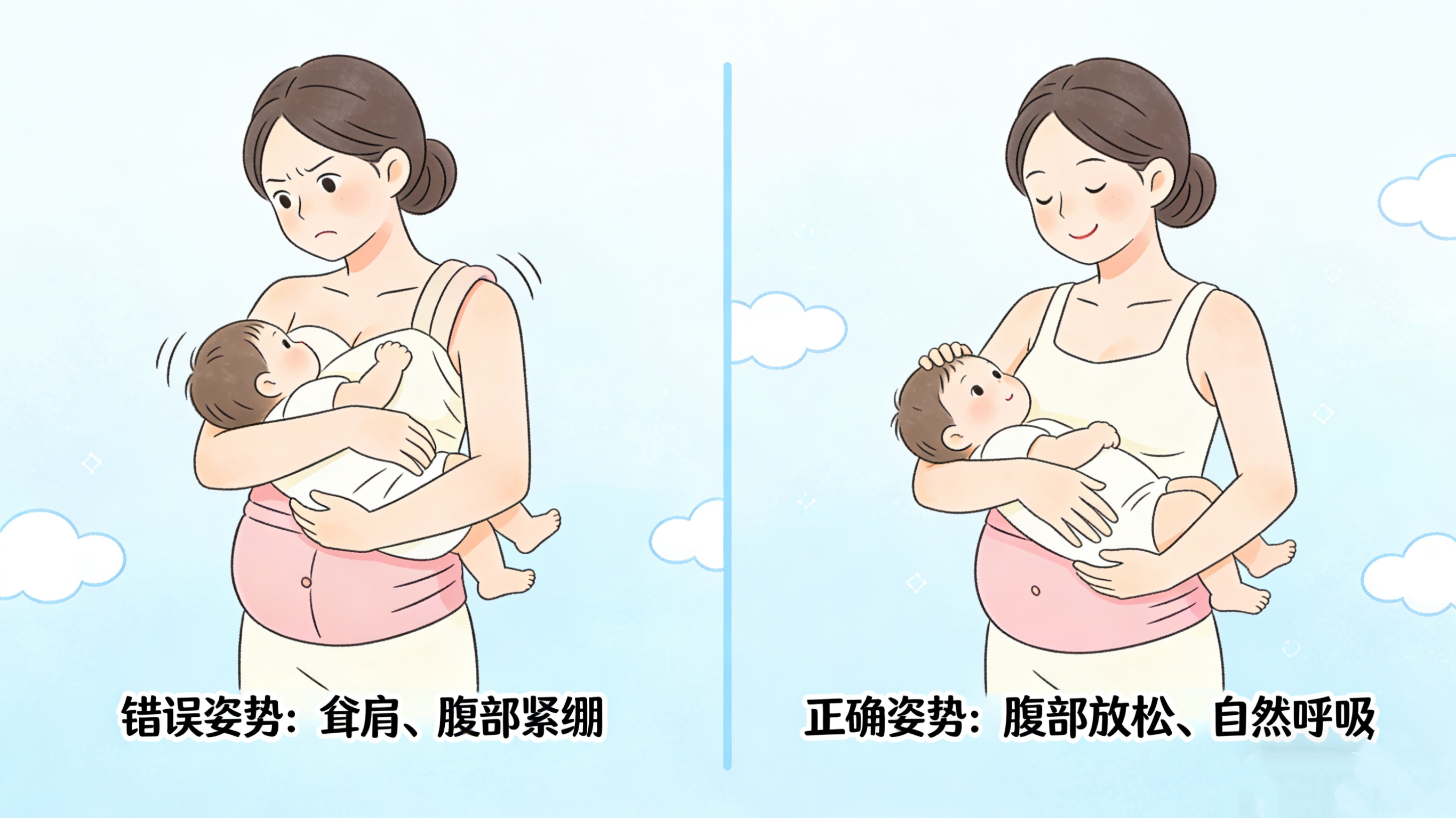 3.正确姿势:抱娃时让宝宝贴近身体,屈膝用腿部发力起身,而不是直接用腰部硬顶。