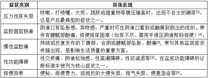 (图表1:女性产后盆底功能障碍性疾病的临床表现,由作者提供)