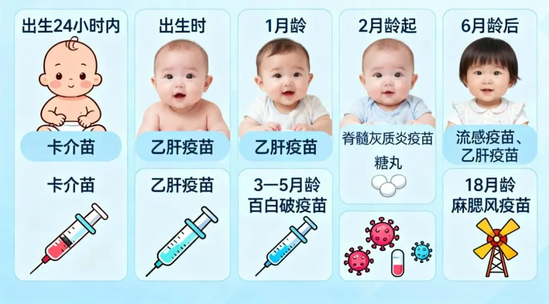 疫苗是强化免疫力最安全、有效的方式之一。不同疫苗针对不同疾病,接种时间也有明确规范。以婴幼儿为例: