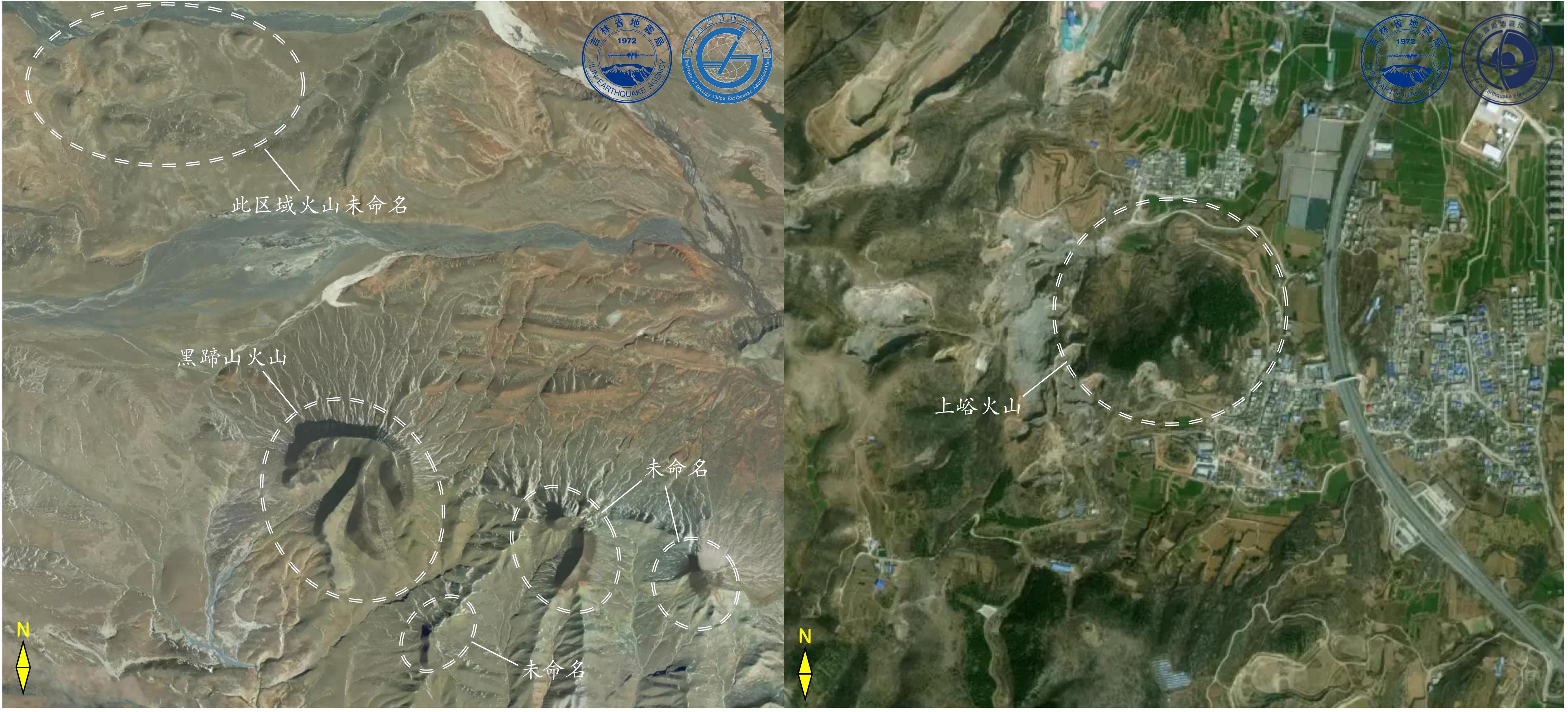 青海省可可西里火山群部分火山和河南省鹤壁市上峪火山对地观测影像图(图源于GF-2与GF-6对地观测影像)