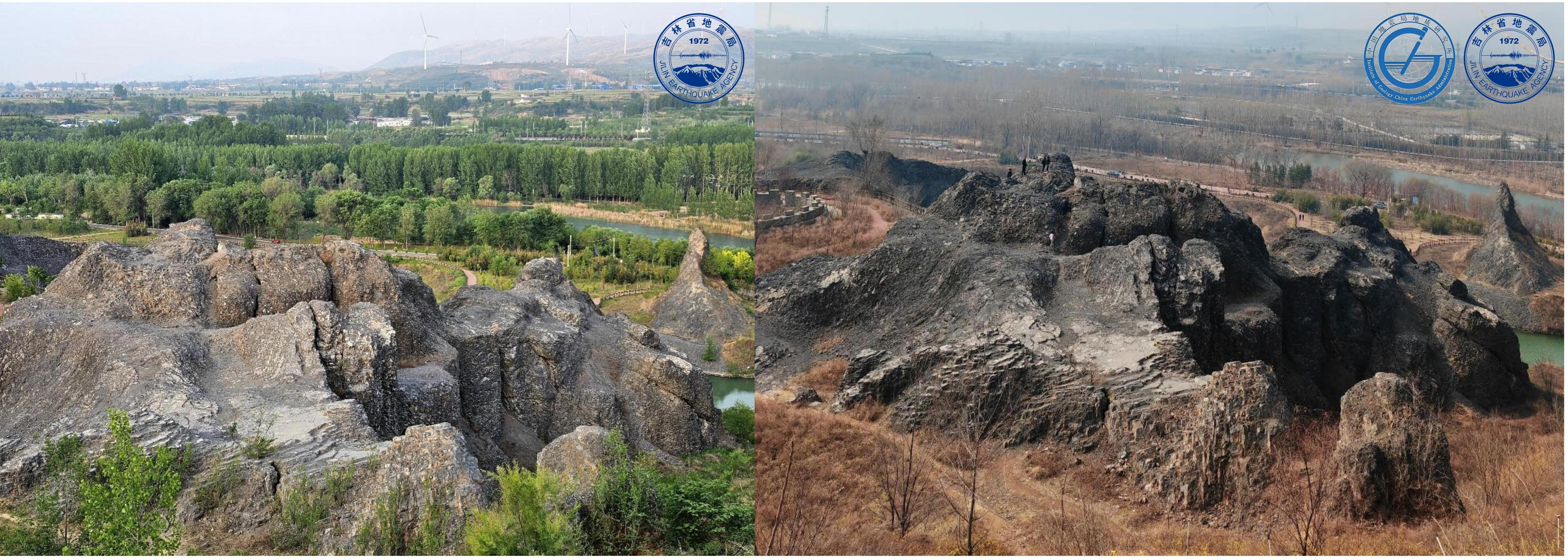 上峪火山位于鹤壁市山城区,地处汤西断裂西北侧(该断裂的最新活动时代为晚更新世),锥顶海拔约269米。火山锥体主要由玄武质火山碎屑岩、玄武岩和苦橄玢岩构成,因其颜色为深灰色或黑色,当地又称为“黑山头”。火山形成于晚上新世,为中心式喷发类型,火山地貌主要为火山颈/火山锥和熔岩台地。火山通道内的苦橄玢岩呈管状或蘑菇状产出,剖面轮廓酷似一个巨大的漏斗,顶部直径范围在200米至250米,向下直径逐渐收缩变小。火山颈被周围的奥陶纪石灰岩与碎屑岩和上新统泥岩地层包裹,在两者之间接触带可以见到棕红色的烘烤层。火山口附近蕴藏着丰富的石英、重晶石、金刚石等矿产资源,还可以发现橄榄石、红刚玉、绿柱石、黑玛瑙等天然宝石,它们的形成与火山喷发活动有着密切的关联。上世纪八九十年代,因人们大量开采火山区内的岩石,致使火山主体部分遭到严重破坏。
