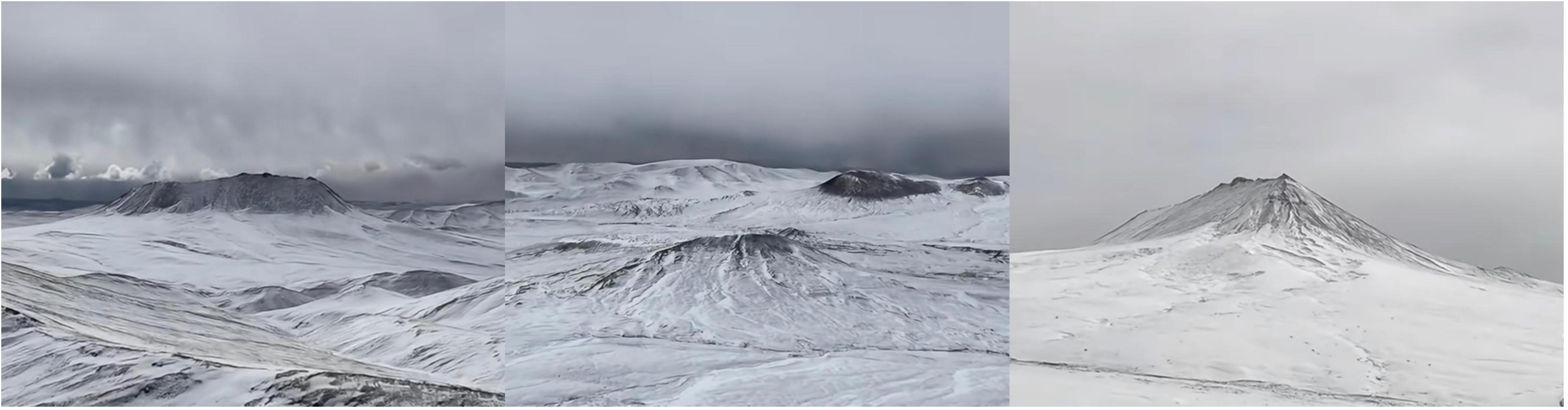 青海省可可西里火山群黑蹄山火山(左图)及部分未命名火山(中图和右图)(图均源于网络)