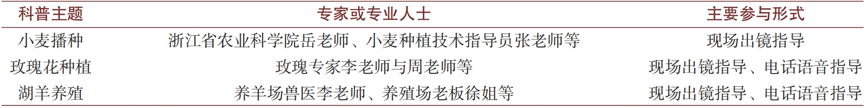 表2 部分科普主题中专家或专业人士参与科普的具体形式
