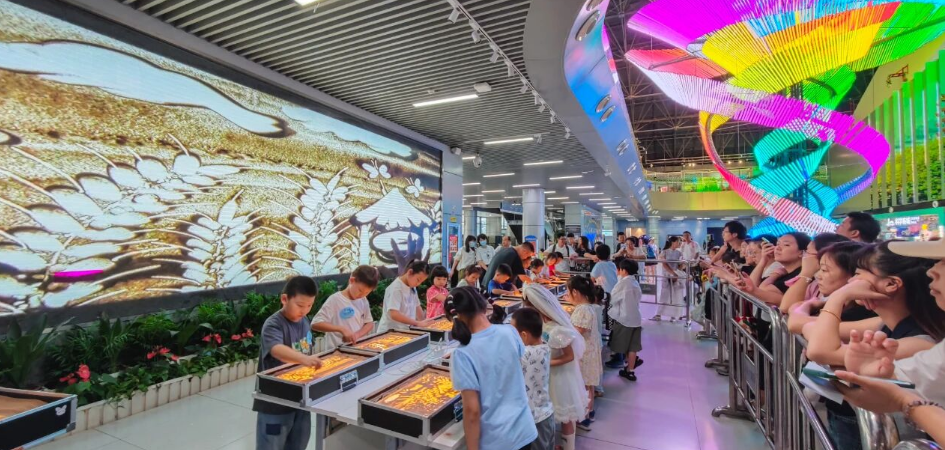 欣赏和学习了关于无线充电的科学知识,沙画体验是现场观众最期待的环节,未来的小小沙画师积极加入到创作体验中,纷纷尝试用手中的细沙描绘看到过的最美烟花和秋天丰收的麦穗。