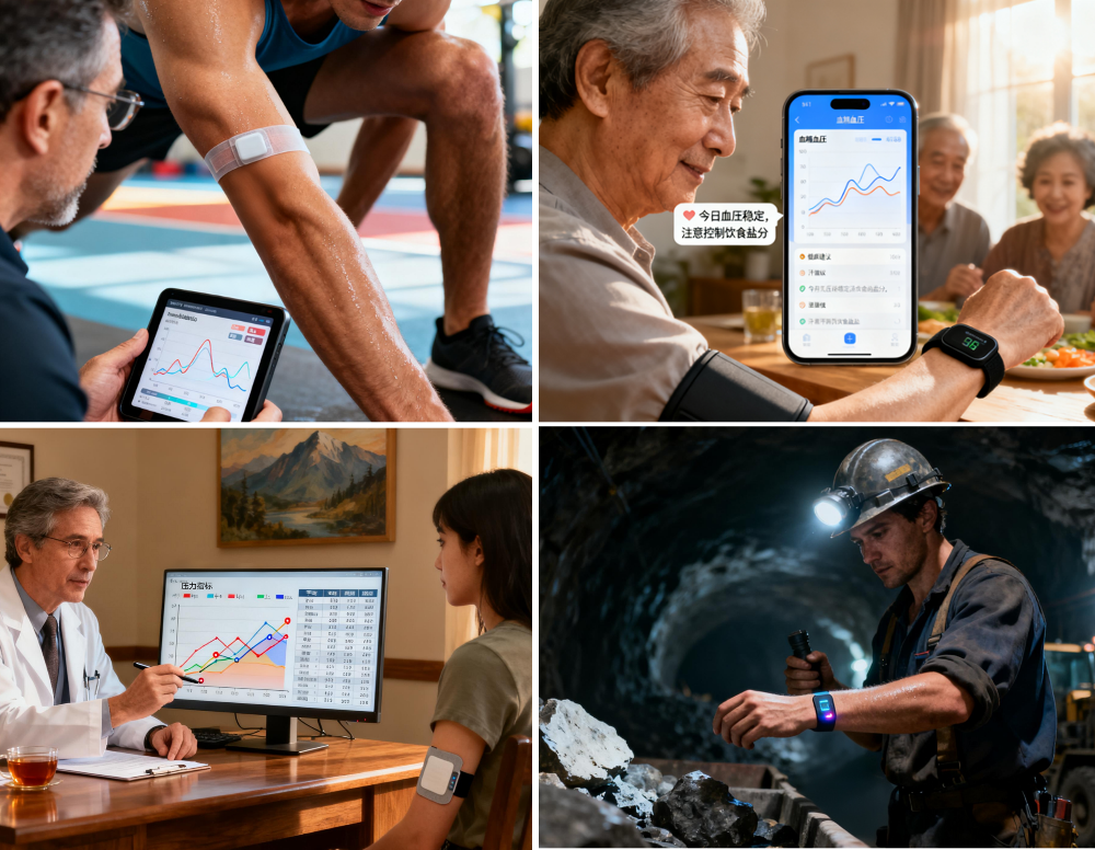 无创汗液传感的应用场景正不断拓宽:个性化运动医学:职业运动员通过实时监测汗液中的钠、钾流失,进行精准的电解质补充,优化训练与恢复策略。慢性病管理:为糖尿病患者提供连续血糖监测之外的新一代无痛解决方案,极大提升生活质量和依从性。精神健康监测:通过分析汗液中的皮质醇等压力激素,为焦虑、抑郁等精神状态的客观评估提供量化依据。军事与特种作业:保障消防员、士兵、矿工等在极端环境下的生理状态安全,预防热射病等职业伤害。