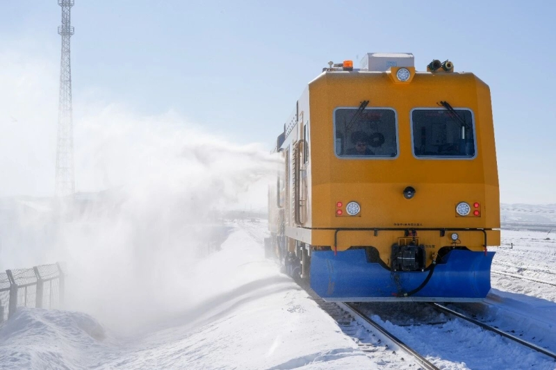 克塔铁路有60多公里线路穿越全国“四大风区”之一的玛依塔斯风区,这里一年中有超过180天大风肆虐,冬季更是常有10至12级大风,即使不降雪,大风也会将沉积的积雪吹上铁路。2019年、2021年,新疆铁路部门专门购置了2台GCX-1000K型极寒轨道除雪车。截至今年3月,2台除雪车累计清雪4769公里,在提高清雪作业效率的同时,大幅减轻了人工作业量,确保了铁路安全畅通。