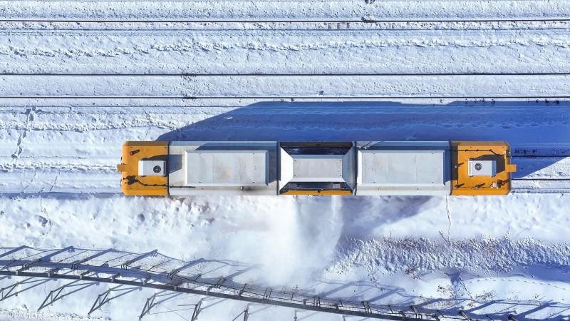 “大黄蜂”配备了除雪铲、滚刷式抛雪机和吹雪风机等除雪装置,集高速扫雪、抛雪、铲雪、吹雪及轨道牵引等功能于一体,具有双动力驱动、双向作业、全方位除雪且速度快等特征,能够在-30℃的极寒环境中稳定工作,最大除雪量达8000立方米,大大提升了铁路线路除雪效率。有它帮忙,工人每小时能清理长约15公里的铁轨。