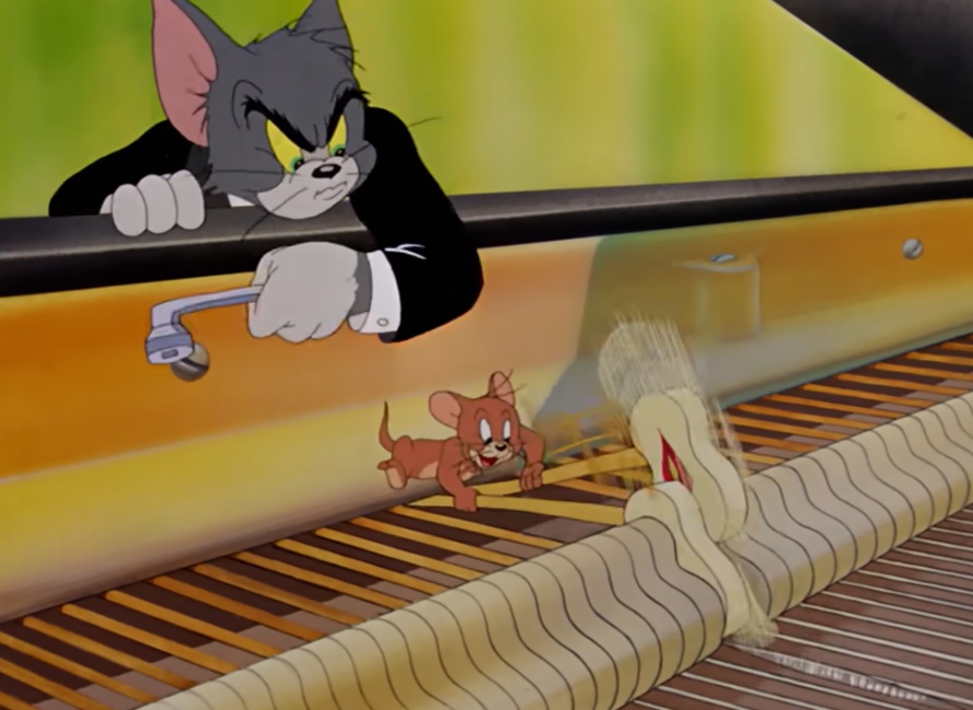也许对很多人来说,这一集动画,是他们人生中第一次“看见”钢琴内部的结构。那么,这其中到底藏着哪些细节,汤姆弹的钢琴到底有多真实呢?就让我们和“钢琴家”汤姆与杰瑞一起一探究竟吧!