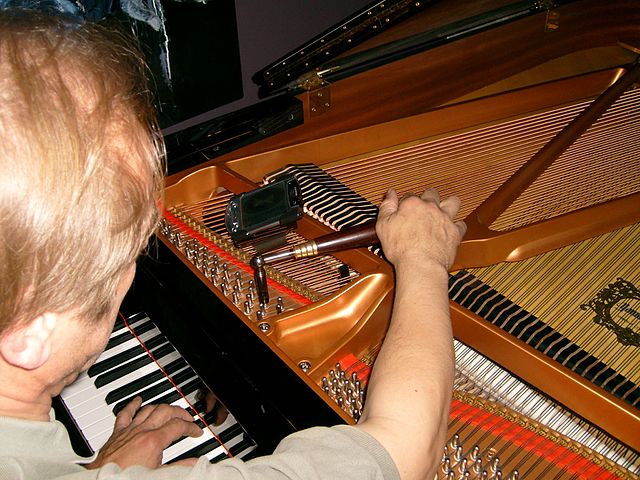 钢琴调律师正在工作 图片来源:wikimedia commons