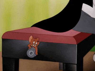 杰瑞把汤姆坐的琴凳拧高 图片来源:《猫和老鼠》旧版第29集
