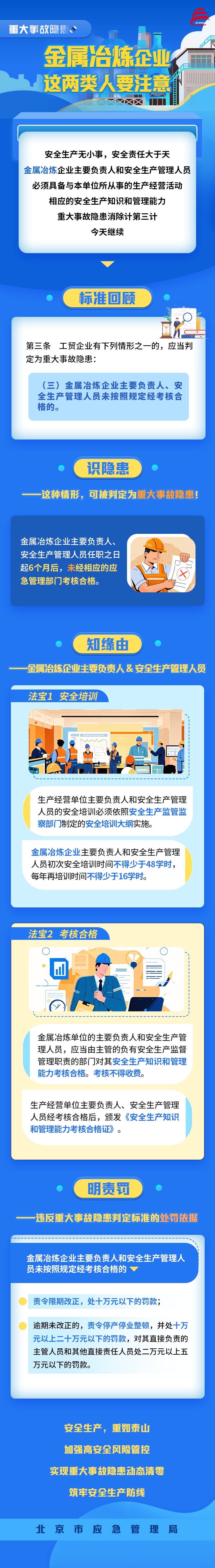 金属冶炼企业主要负责人和安全生产管理人员,对安全生产起着至关重要的作用,规定时间内未通过考核,也属重大事故隐患。