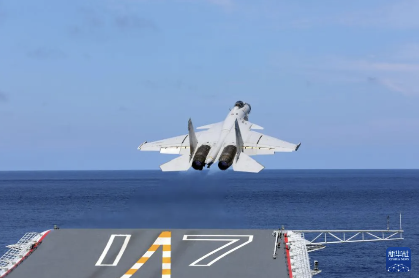 歼-35舰载战斗机在海军福建舰电磁弹射起飞,这是战机离舰瞬间。