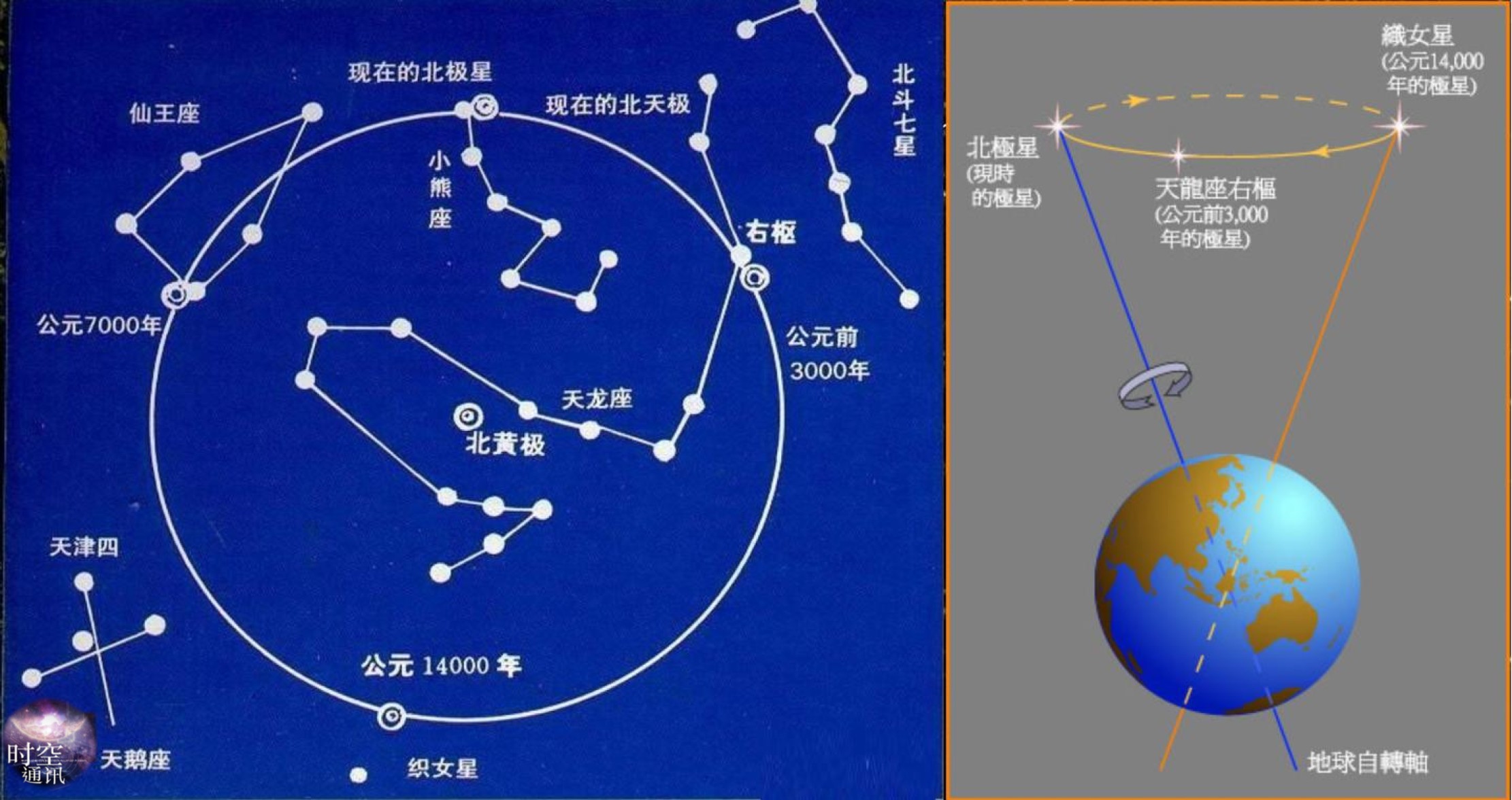 在这25771年里,地球北极轴遥指的天际,哪颗亮星靠得最近,就是北极星。由于地轴在圈圈上移动,位置并不固定,因此北极星也就并非哪一颗固定的恒星,而是凡在这个圈圈附近的亮星,都是北极星的备选代表。